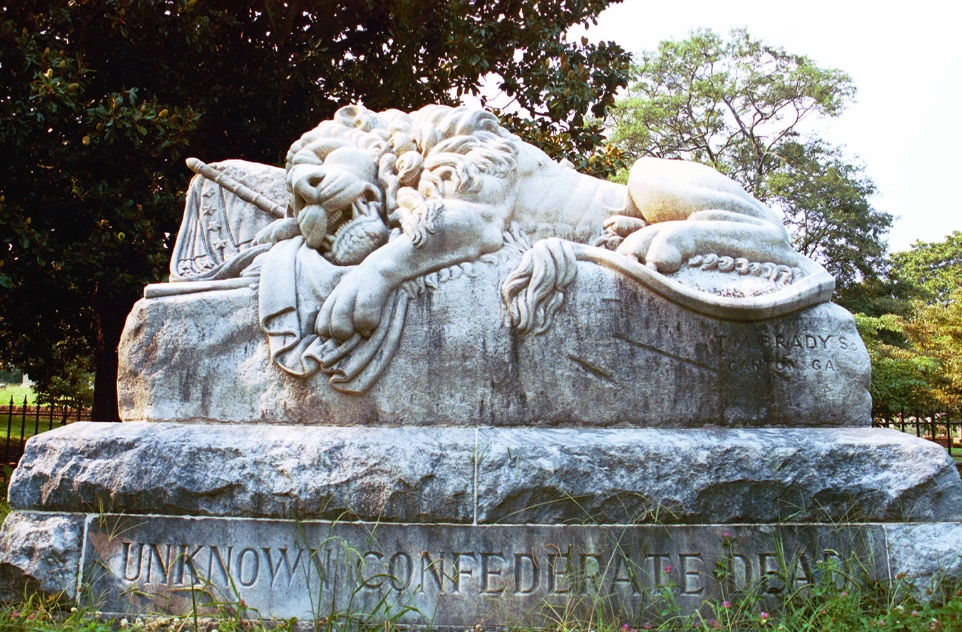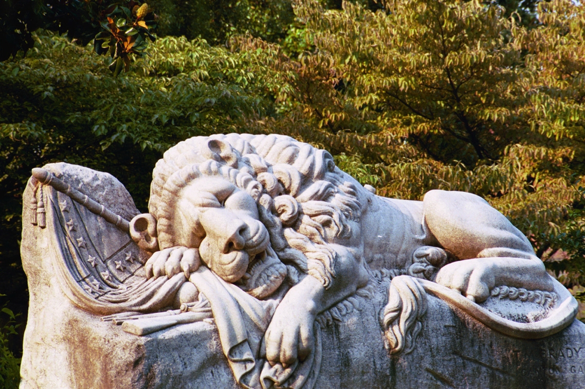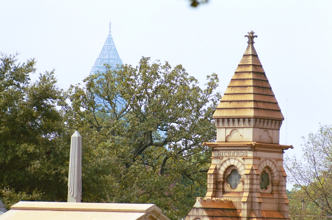 This statue is one of the last things I see every time I go to Oakland. It’s near the front where my car is parked, but the cemetery’s path takes you on a loosely-circular path that brings you to this statue at your walk’s end. I was so excited when I looked up and saw this shot just begging to be taken. The hazy sky and buildings of downtown Atlanta were a perfect background for this statue.