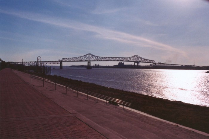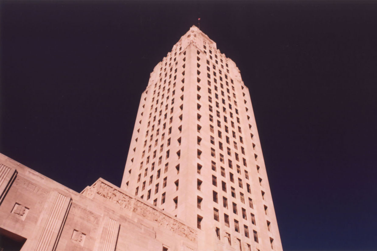 These shots were taken in Baton Rouge, Louisiana in 2003. I had owned my first SLR, a Canon AE-1, for all of a few months. I decided to bring the camera with me on this particular trip in 2003. I’m glad I brought it with me, and I’m also glad I picked up a polarizing filter on my way out of town. You can see some rather extreme effect from polarizing in the state capitol photo at the bottom of the post and in the cathedral photo. At any rate, here goes.